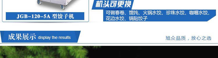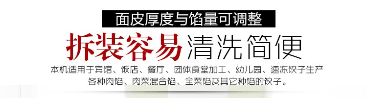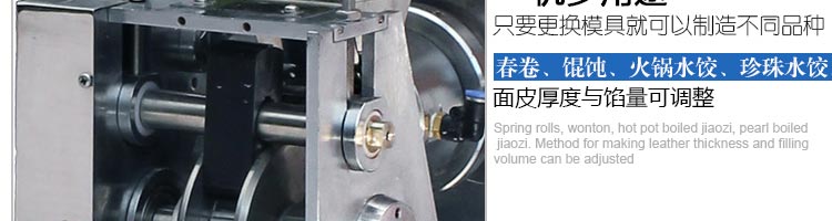 JGB-120-5A型輸送帶餃子機,本機是一款可生產各種肉餡、肉菜混合餡、全菜餡及其他種餡餃子的設備。一機多用途,只要更換模具,就可制作不同的食品,如春卷、餛飩、咖喱角、鍋貼等。適用于賓館、飯店、餐廳、團體食堂加工,幼兒園、速凍餃子生產。