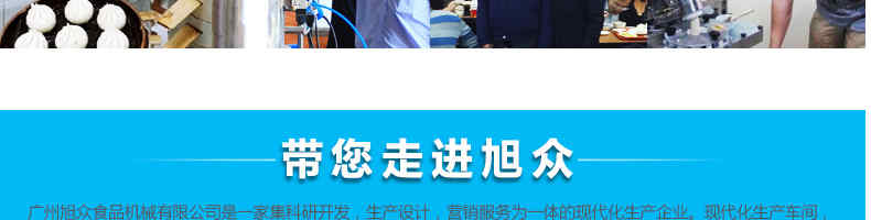 廣州旭眾食品機械有限公司是一家集科研開發(fā),生產(chǎn)設(shè)計,營銷服務(wù)為一體的現(xiàn)代化生產(chǎn)企業(yè)。現(xiàn)代化生產(chǎn)車間,精湛制造技術(shù),所產(chǎn)機械歷經(jīng)市場重重考驗,不斷贏得海內(nèi)外客戶的贊譽。
