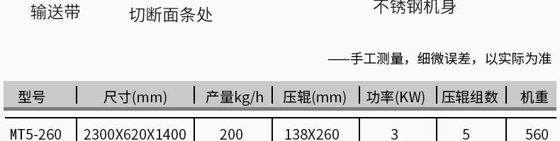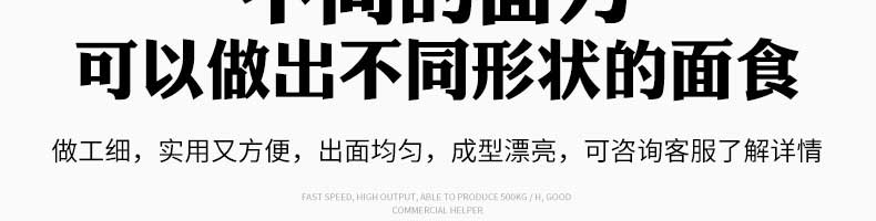 MT5-260型面條機,不同的面刀可以做出不同形狀的面食做工細(xì),實用又方便,出面均勻,成型漂亮,可咨洵客服了解詳情