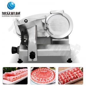臺式全自動切片機,適合切無骨肉類和其他類似榨菜帶有彈性的食物,把原材料肉切成肉片,并可自動成卷狀。可切牛肉片、羊肉片等