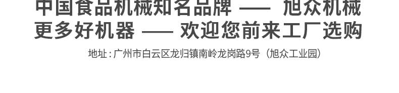 廣州旭眾食品機械有限公司是一家集科研開發,生產設計,營銷服務為一體的現代化生產企業。現代化生產車間,精湛制造技術,所產機械歷經市場重重考驗,不斷贏得海內外客戶的贊譽。
